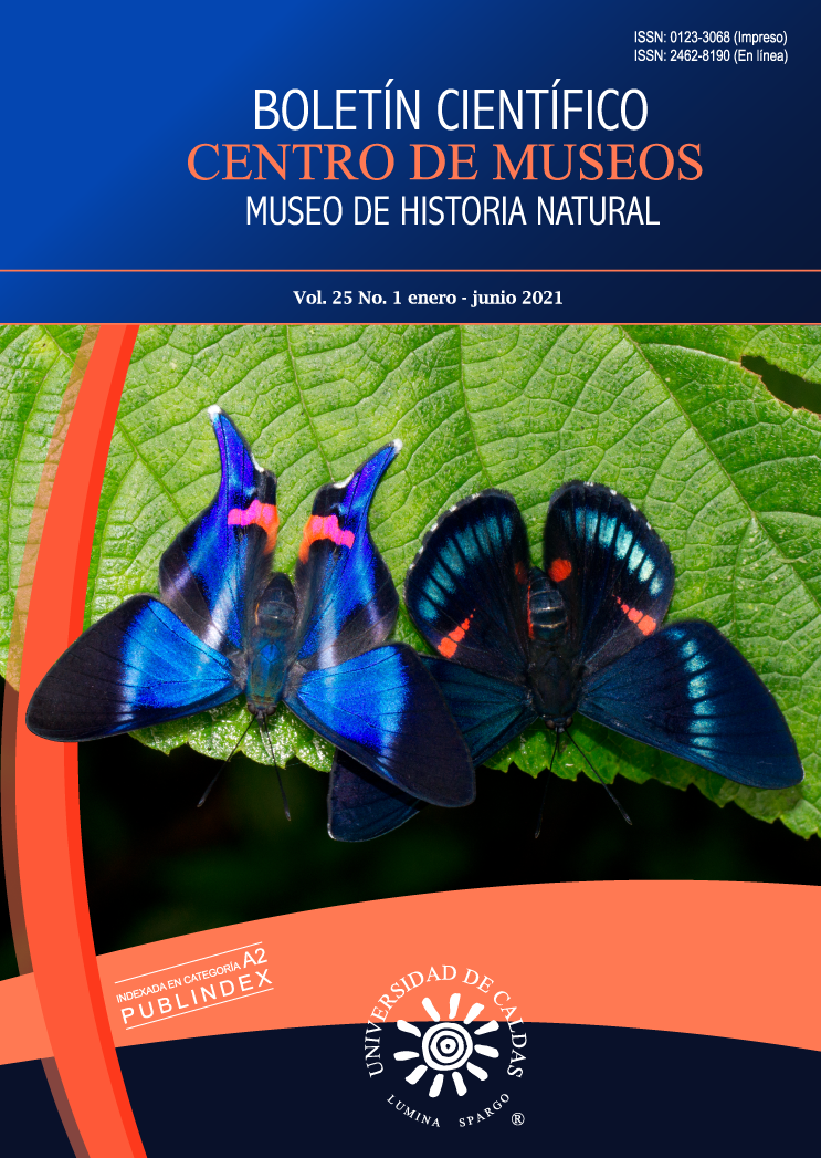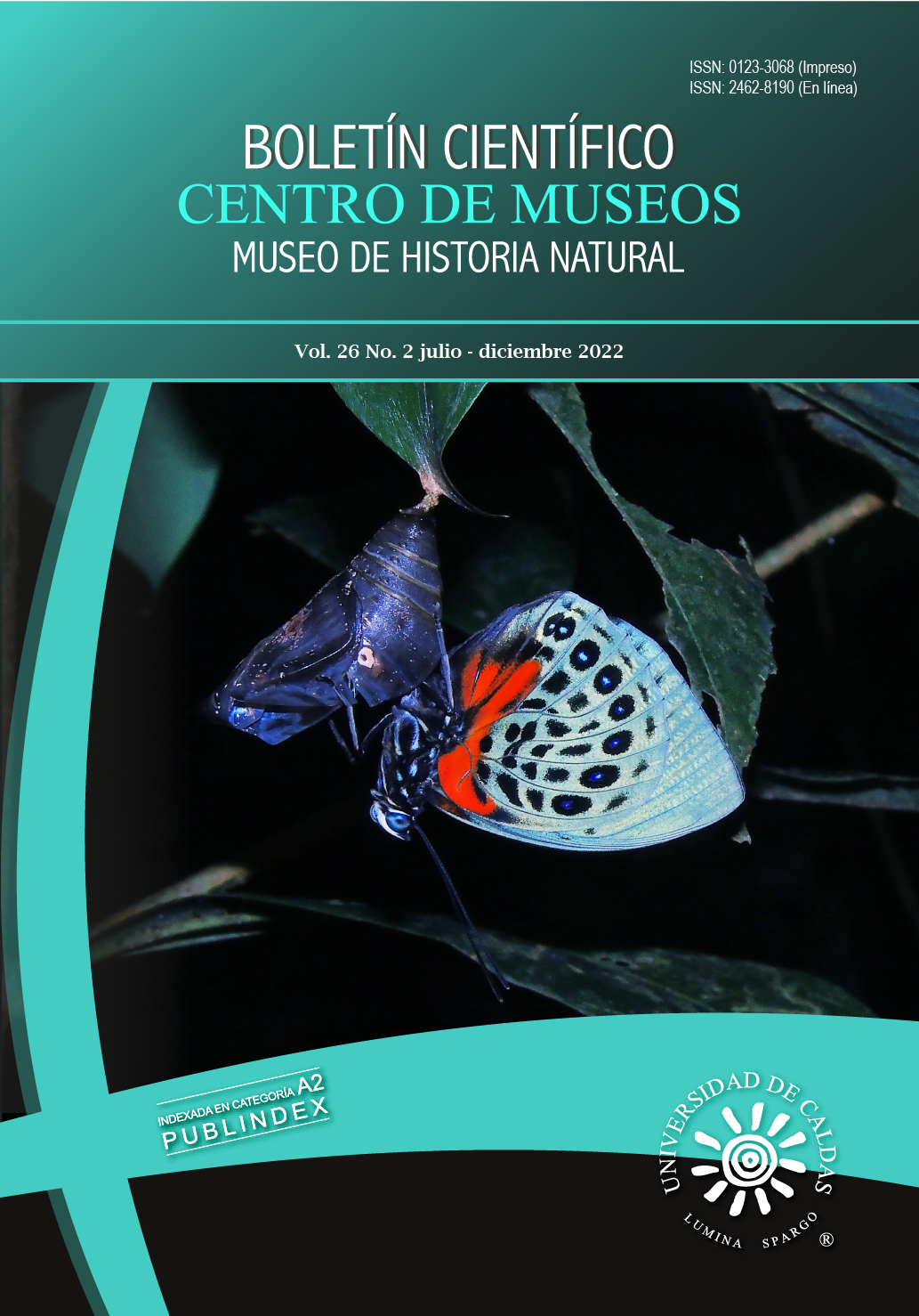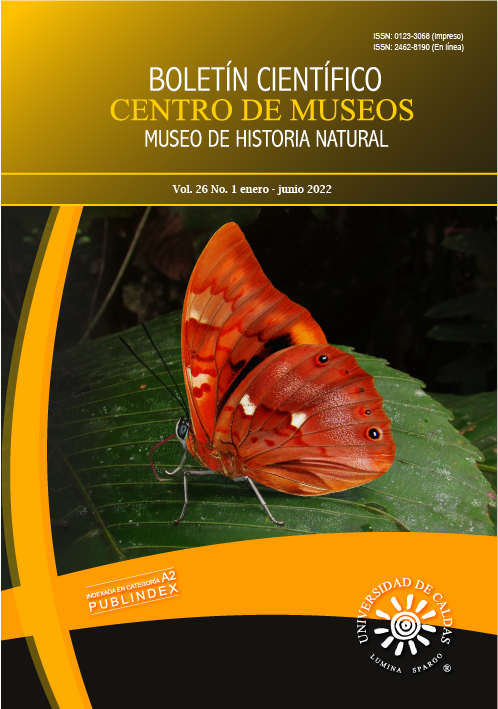 El BOLETÍN CIENTÍFICO DEL CENTRO DE MUSEOS de la Universidad de Caldas es una revista especializada para la divulgación de trabajos resultantes de la investigación en HISTORIA NATURAL relacionada en ciencias biológicas afines.