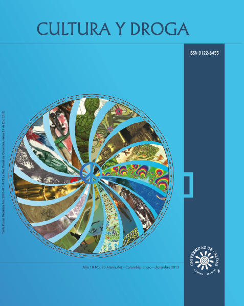 La Revista Cultura y Droga de la Facultad de ciencias Jurídicas y Sociales, es una publicación científica de acceso abierto sin cobro de APC (Article Processing Charge), editada y financiada por la Universidad de Caldas, que circula semestralmente en el ámbito nacional e internacional en formato impreso y digital (PDF). La Revista, recibe artículos en inglés, portugués y español sobre publicaciones originales e inéditas que contribuyan al avance del conocimiento y a la discusión académico-científica sobre la relación cultura y droga. Acoge artículos de diversas disciplinas: sociales y humanas, naturales, médicas, artísticas, filosóficas, botánicas, así como, conocimientos indígenas tradicionales.